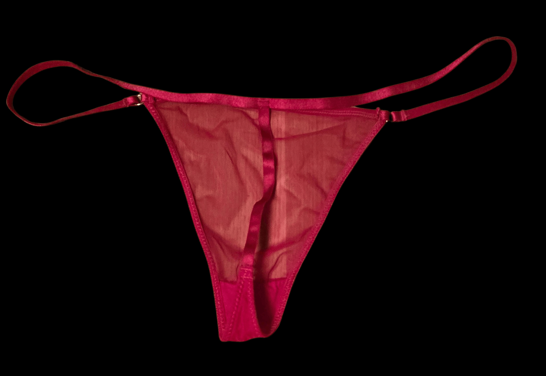 Roter G String, intensiv nach meinem weiblichen Duft riechend. Tragedauer 48 h