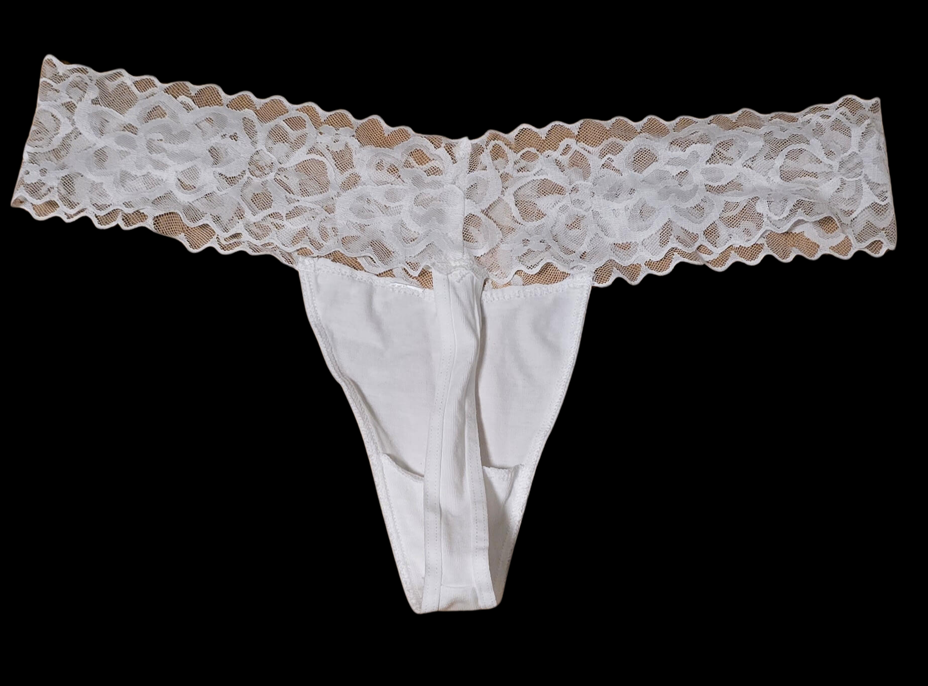 Weisser String, intensiv nach meinem weiblichen Duft riechend. Veredelt mit NS. Tragedauer 24h.